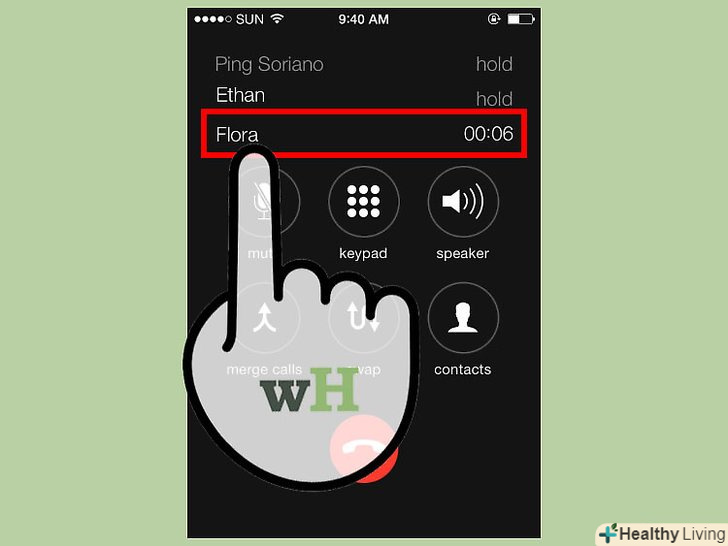 Зробіть другий виклик.у вас буде доступ до списку контактів і набору з клавіатури. Коли ви додзвонитеся до другого адресата, перший дзвінок автоматично перейде в режим очікування.