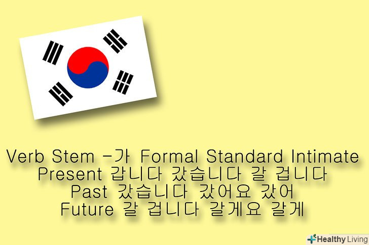 | Основа дієслова-가 | офіційно-ввічливий | неофіційно-ввічливий | просторічний |