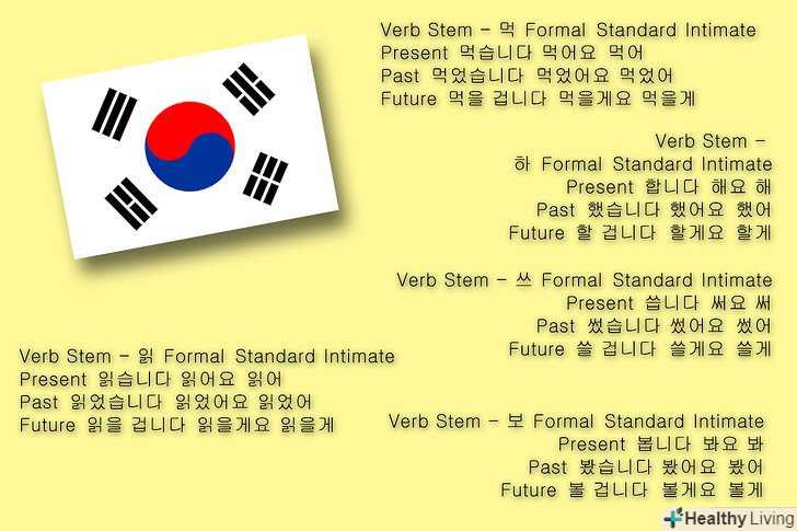У корейській мові поряд з трьома часами існують три різних типи мови (офіційно-ввічливий, неофіційно-ввічливий і просторічний).всі три необхідні, а значить, ми відразу ж їх розучимо.