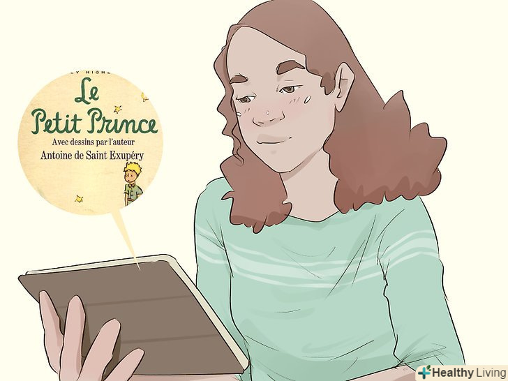 Читайте дитячі книги французькою мовою.флеш-картки допомагають формувати словниковий запас, але також слід навчитися використовувати нові слова в контексті. У дитячих книгах проста мова, а картинки допоможуть припустити значення слів, які ви не знаєте.[18]- Пошукайте такі книги онлайн або в бібліотеці. Також можна завантажити безкоштовні або недорогі електронні книги і читати їх на смартфоні або планшеті.