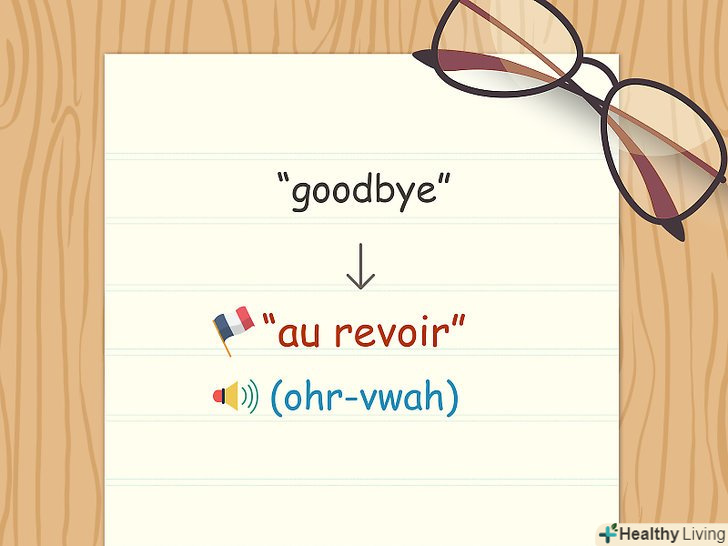 Говорите «au revoir», «bonne nuit» або «salut», щоб попрощатися. «Au revoir» (про ревуар) – це найвідоміший варіант прощання у французькій мові, який перекладається як «до зустрічі». В якості менш формального виразу можна використовувати слово "salut«, яке означає» Привіт «або»поки". Також у французькій мові часом використовується італійське слово "ciao «у фразах на кшталт»Ciao, salut".[2]- Також можна сказати "bonne nuit «(бон Нюї), що перекладається як»Доброї ночі".