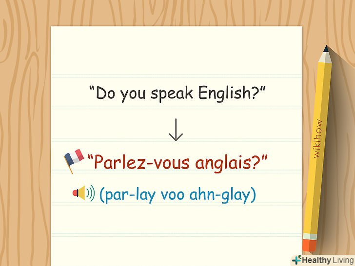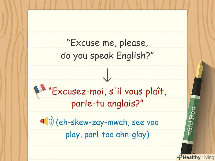 - Французи часто знають іноземні мови на зразок англійської, але ввічливо вибачитися, якщо ви не говорите по-французьки: «Je suis désolé, mais je ne parle pas français» (ж сюї дезоле, ме ж не парль ПА Франсе). Це означає «Вибачте, я не говорю по-французьки".[6]
