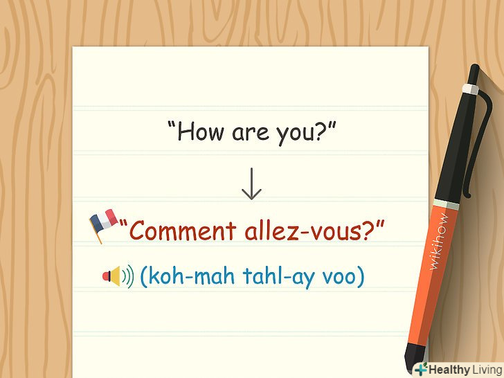 Навчіться питати і відповідати на питання «Як справи».зверніться до людини фразою " Comment allez-vous?"(коман талле ву). Це ввічлива форма. Менш формальна фраза звучить як " Comment vas-tu?"(коман ва тю) або " Ça va?"(са ва).[8]- На таке питання можна відповісти " Très bien (тре б'єн), що означає «Дуже добре». Ще можна сказати "Pas mal «(ПА маль), що перекладається як» непогано«, або» Ça va «(са ва) – »потихеньку".