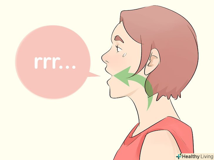Відпрацьовуйте вимову, особливо французький звук «R».слухайте носіїв мови і прагніть наслідувати, щоб навчитися формувати звуки в горлі, а не в передній частині ротової порожнини. Наприклад, в російській мові звук «Р» утворюється шляхом деренчання кінчика язика, тоді як для французького «R» корінь язика потрібно відвести ближче до м'якого піднебіння.[10]- Кращий варіант-працювати з носієм мови, який буде виправляти ваші помилки у вимові. При наявності таких знайомих або людей, які побіжно розмовляють французькою мовою, попросіть їх допомогти вам.[11]