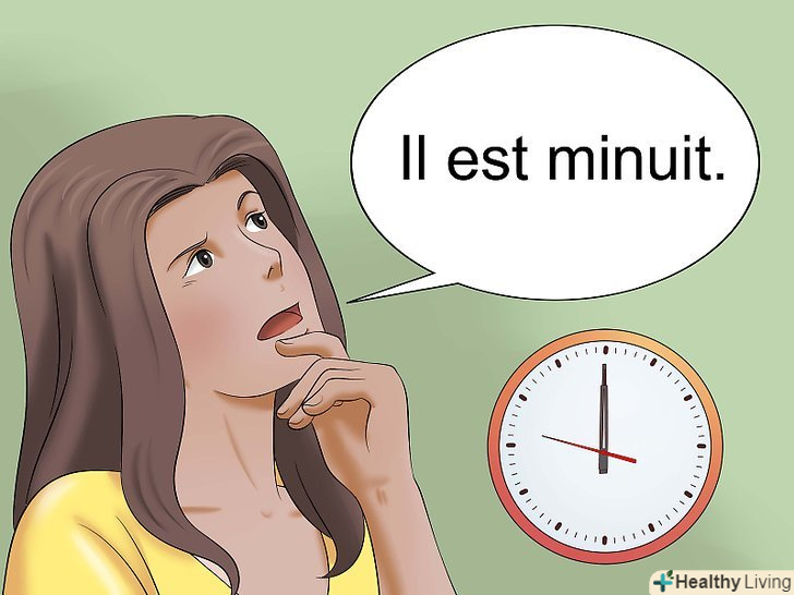 Вивчіть слова, що позначають полудень і північ. вам нема чого говорити повністю "Il est douze heures" опівдні або опівночі. Краще скажіть опівдні "il est midi «(Іль е міді), а опівночі — » il est minuit" (Іль е мінюі).- Тут також можна додавати хвилини. Наприклад, о 12: 15 дня можна сказати: «Il est midi quinze» (Іль е міді кян: з).