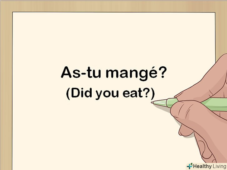 Переставте допоміжний дієслово, щоб задати питання.можливо, ви вже знаєте, що для того, щоб задати питання по-французьки, необхідно поміняти місцями підмет і присудок. Якщо ви хочете використовувати Passé composé, слід переставити тільки допоміжний дієслово. Просто поміняйте місцями допоміжний дієслово і підмет. При цьому причастя минулого часу виявиться відразу за підметом.[15]- Наприклад: "As-tu mangé?"( Ти поїв?).