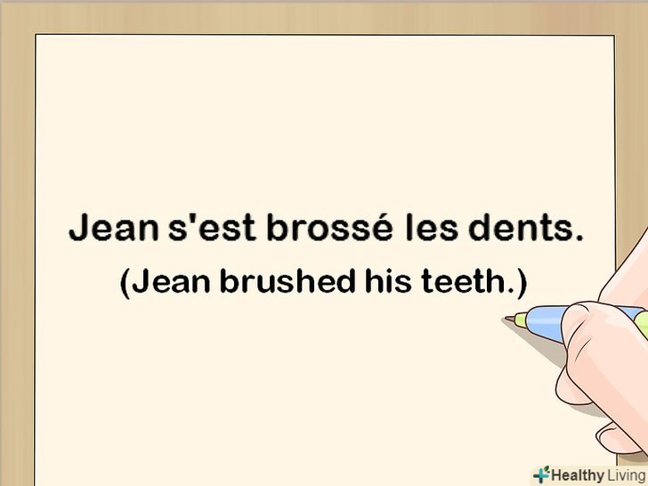 Для утворення passé composé з зворотними дієсловами використовується допоміжний дієсловоêtre (бути). якщо ви говорите про будь-яку дію, яку хтось здійснював сам з собою, при утворенні passé composé слід використовувати дієслово être. Наприклад, "Jean s'est brossé les dents", тобто"Жан почистив зуби".[9]- Зворотні дієслова легко розпізнати, так як в невизначеній формі їм передує займенникse. Наприклад, " se réveiller "є зворотним дієсловом, який означає"Прокидатися".