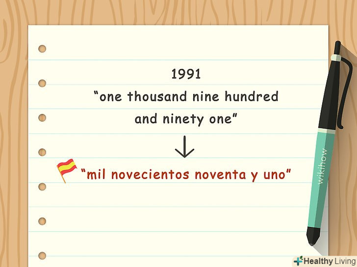 Правильно називайте рік.у більшості випадків вам, швидше за все, не потрібно додавати рік до дати, особливо в невимушеній бесіді. В іншому випадку просто поставте ще одне de після місяця, а потім назвіть цифри відповідного року.[5]- В іспанській мові, так само, як і в російській, потрібно промовляти рік повністю. Наприклад, якщо хочете сказати1991, це буде звучати так: mil novecientos noventa y uno (тисяча дев'ятсот дев'яносто перший ).