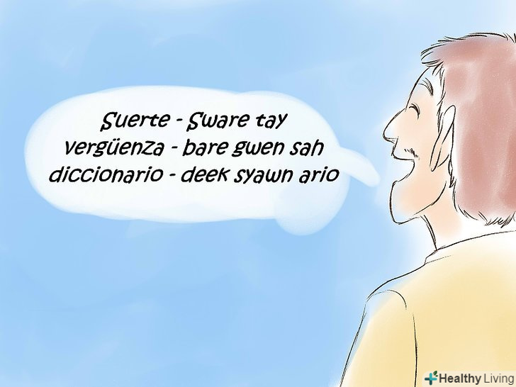 Ось слова для відпрацювання іспанського вимови: Suerte – суэртэ, vergüenza – бэргуэнса, diccionario – диксьонарио, belleza – бэйеса, cuidadosamente – кюидадосааментэ, mejor – мэхор, cumpleaños - кумплеаньос, audicionar – аудисьонар, hacer – асер.