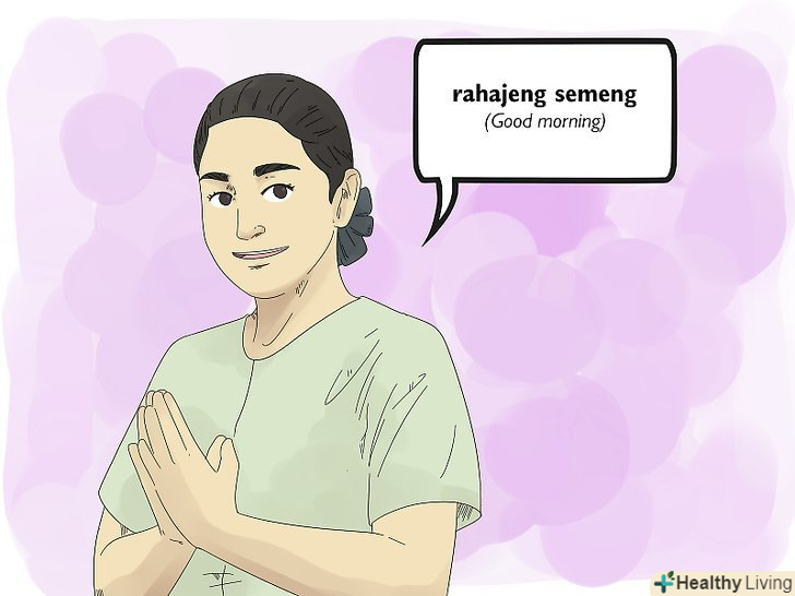Спробуйте інші види привітань.за допомогою них ви зможете сказати такі фрази як "Доброго ранку" або "Добрий вечір". Маючи трохи розширений набір привітань, ви зможете відчути себе трохи ближче до балійських господарів.- Щоб побажати доброго ранку, скажіть "rahajeng semeng".
