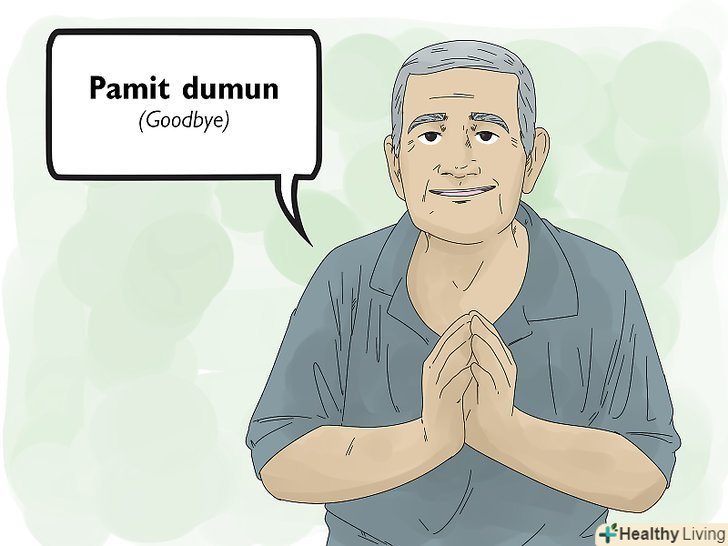 Ввічливо завершіть бесіду.якщо ви шанобливо привітали людину, вам захочеться закінчити розмову в тій же манері. Люди оцінять, якщо ви попрощаєтеся, не просто сказавши" поки " або " dah " на індонезійському діалекті. Самий ввічливий спосіб попрощатися-це сказати "Titiang lungsur mapamit dumun", що перекладається як"а зараз мені потрібно йти". Зазвичай ця фраза використовується при розмові з високоповажними людьми або людьми вищої касти.[10]- Також можна попрощатися, сказавши" Pamit dumun"," Pamit"," Ngiring dumun "і"Ngiring".