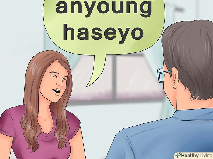 Використовуйте "аньон хасейо" в більшості випадків.[1] цей вислів є найпоширенішим привітанням і може бути використано в спілкуванні з більшістю ваших знайомих. Найчастіше його використовують, щоб висловити повагу. Вимовляйте це привітання як "ан-йо ха-сей-йо". На хангилі фраза пишеться так: 안녕하세요.- Можна використовуватианьон хасейо як з друзями, - особливо з тими, хто старший за вас — так і з літніми людьми. Це самий формальний спосіб привітання, але в той же час і ввічливий варіант слова «Привіт», що робить цей вислів найкращим для всіх щоденних ситуацій.