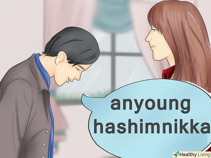 Використовуйте "аньон хасімніка", якщо потрібно висловити повагу. [3] Використовуйте це привітання в ситуаціях, коли хочете висловити глибоку форму щирості і поваги. На хангыле аньон хасимника пишеться так: 안녕하십니까. У розмовній мові цей вислів вимовляється " ан-йо хасим-ні-кка?».- Будучи формальним привітанням, цей вислів рідко використовується серед друзів і родичем в щоденному спілкуванні. Приводом для його використання може послужити прибуття вкрай важливого і шанованого гостя. Ви також можете вітати Так своїх коханих і близьких, яких не бачили довгий час, щоб надати словами емоційне забарвлення.