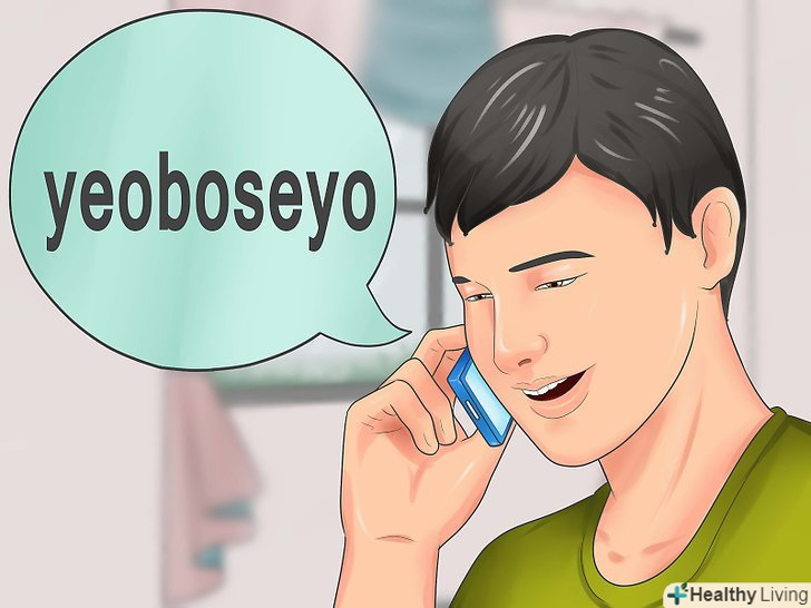 Відповідайте на телефонний дзвінок привітанням "йобосейо". на хангилі йобосейо пишеться як: 여보세요. У розмовній мові привітання вимовляється так:»йо-бо-сей-йо".[4]- Використовуйте цей вислів, відповідаючи на дзвінок незалежно від того, хто дзвонить.