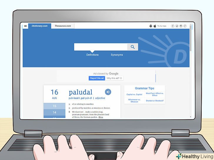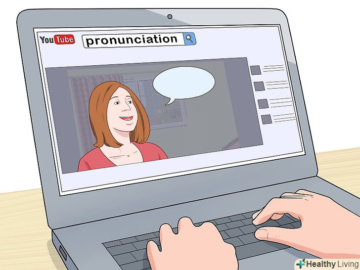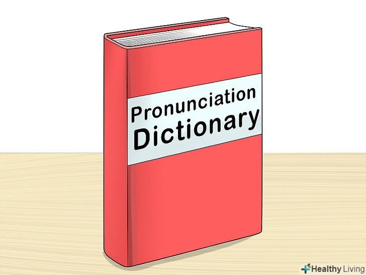 Використовуйте онлайн-словник.ще один варіант-використовувати Dictionary.com або інший еквівалент словника (залежно від акценту, над яким ви працюєте). Онлайн словник дасть вам можливість почути вимову слова. Крім того, це безкоштовний ресурс за умови, що у вас є інтернет.[15]- Ще краще використовувати фізичний і онлайн-словник одночасно. Можна тримати фізичний словник під рукою і слухати вимову онлайн.