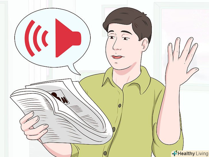 Читайте вголос.щодня виділяйте трохи часу на читання вголос мовою, над якою працюєте. Під час процесу вимовляєте кожне слово повільно і ретельно. Можна читати газету, книгу або комікс. Читайте все, що Вам подобається, щоб процес був приємним і продуктивним. Вимовляєте слова вголос-це допоможе вам вловити ритм і поліпшити вимову.[4]