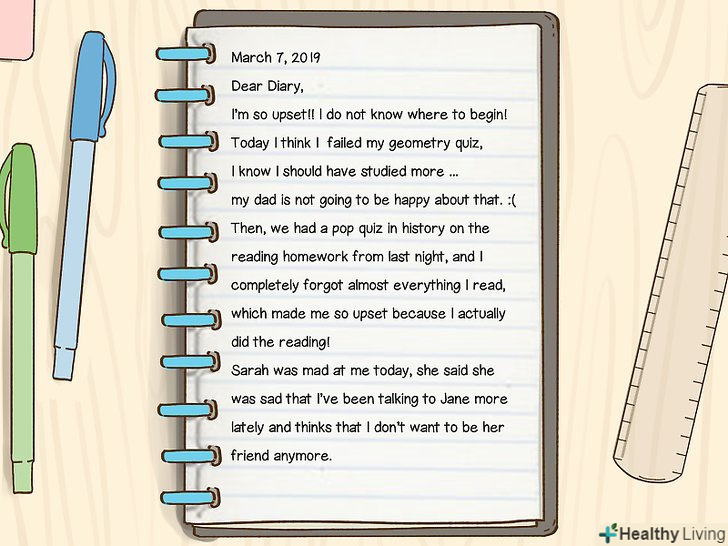 - Записуйте в щоденник кілька пропозицій щодня. Зовсім необов'язково, щоб це було щось глибоко особисте, пишіть про погоду, про те, що їли на обід або про плани на день.