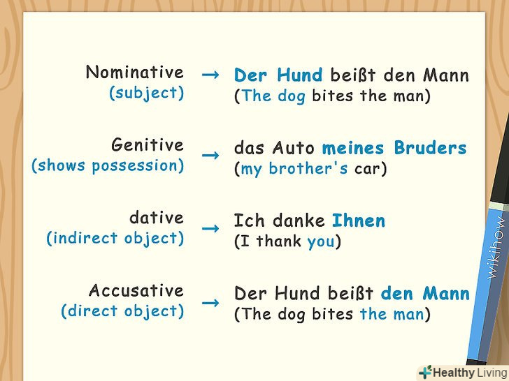 Відмінки. так, в німецькому, на відміну від того ж англійського, відмінок - це повноцінна граматична категорія. На щастя, на відміну від російської, в німецькому граматичних відмінків в півтора рази менше.- Відмінки в німецькій мові наступні: називний (Nominative), родовий (Genetive), давальний (Dative) і знахідний (Accusative).