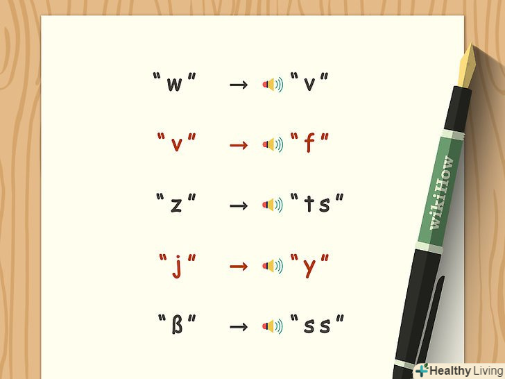 Вивчіть вимову приголосних.приголосні німецької мало чим відрізняються від приголосних англійської мови, хоча відмінності все ж є.- W-звучить як"в"