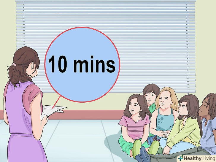Розділяйте уроки на часові відрізки.якщо ви працюєте з новачками або учнями наймолодшого віку, то розділяйте уроки на кілька відрізків по 10 хвилин. Завдяки цьому учні не втратять концентрацію, а ви не перевантажите їх кількістю нової інформації.- Не обов'язково дотримуватися рівно 10 хвилин. Можна трохи розширити відрізки, якщо це позитивно позначиться на навчанні.