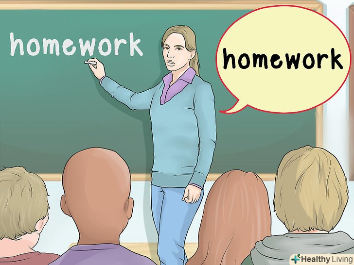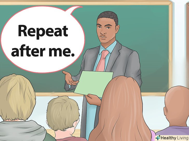 Підкріплюйте усні фрази письмовими підказками.завжди використовуйте усні та письмові фрази, коли пояснюєте наступну вправу або домашнє завдання. Завдяки цьому учні зможуть сприймати слова на слух і бачити їх у письмовому вигляді. Так їм буде простіше пов'язати письмову форму слова з вимовою.- Підготуйте завдання і роздайте їх учням в друкованому вигляді. Якщо навчання відбувається онлайн, то відправте завдання по електронній пошті, після чого поясніть завдання усно по відеозв'язку.[9]