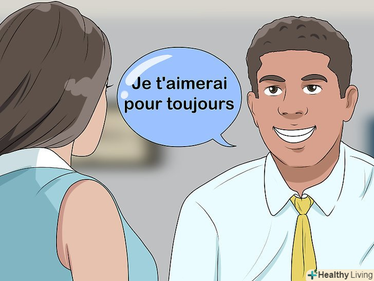 Скажіть це більш яскраво.не зациклюйтеся на буквальному"я люблю тебе". Існують десятки способів висловити свої почуття, хоча і трохи складніші.- Je t aimerai pour toujours –Я буду любити тебе вічно (ж тэмерэ пур тужур)