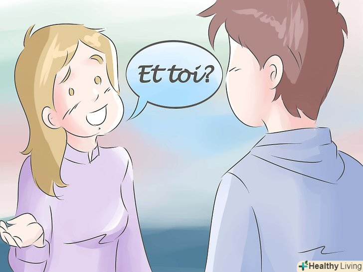 З друзями Використовуйте фразу " Et toi?"це питання задають одному, після того як він перший запитав про ваших. Це означає " А ти? "або" А у тебе? ".- Toi перекладається як"ти"