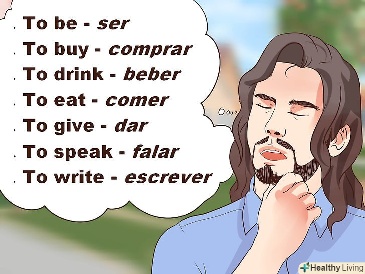 Навчіться відмінювати дієслова. На жаль, сказати "я бути росіянин" -це не дуже-то вражаюче. Втім, ви це і самі знаєте. Дієслова повинні бути у відповідній формі! Так як дієслова в португальському бувають різні, давайте зараз просто зупинимося на Т.зв. правильних дієсловах. Власне, якщо ви знаєте іспанську, то все буде зовсім просто. Якщо ні... загалом, система-майже 1-в-1 Як в російській мові, хіба що закінчення інші.- Дієслова на " Ar "(comprar) відмінюються так: -o, -as, -a, -amos, -ais, -am. Тобто " compro," "compras," "compra," "compramos," "comprais, "" compram."