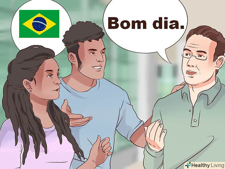 Навчіться правильно вітатися з людьми.найперше, що треба зробити, увійшовши кудись-це привітатися. Місцеві оцінять, якщо ви почнете розмову саме так. І ось як можна почати діалог:- Olá / Oi. =Привіт / Здрастуйте.