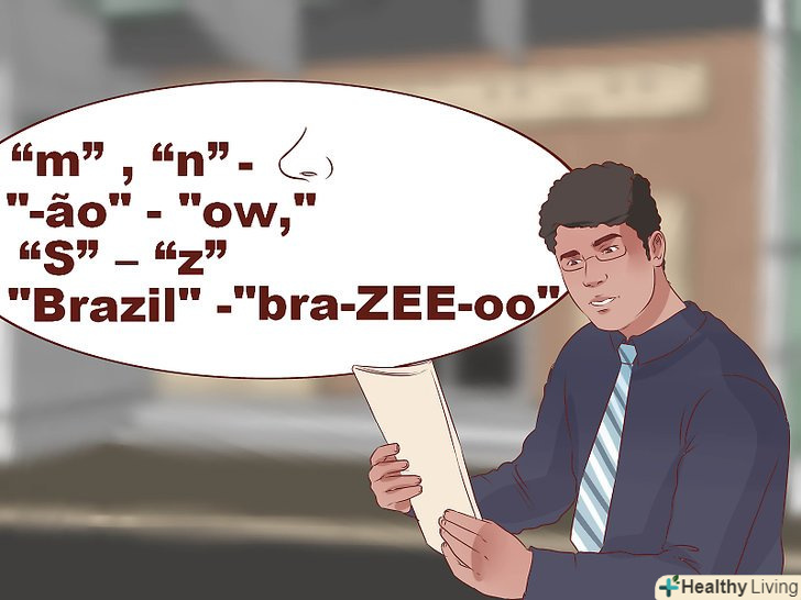 Правила та винятки.на відміну від іспанської, Португальська мова багата на хитрощі фонетичного характеру. Те, як саме повинні вимовлятися ті чи інші букви, залежить від їх положення в слові. І часом те, до чого ви звикли, і те, як треба правильно - це дві більше різниці. Приміром:- Назалізація (проголошення через ніс) кожної "m" і "n" на кінці всіх складів (але не між голосними), щоб звук виходив схожим на "ng.""Bem "(добре) звучить як " beng."[1]