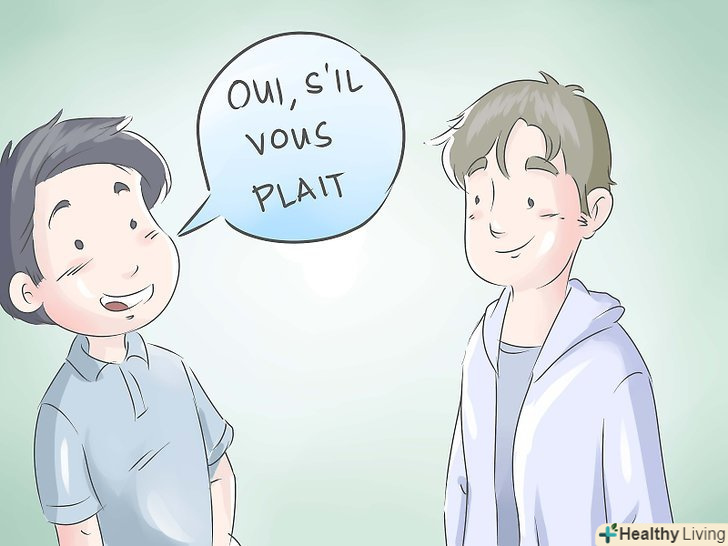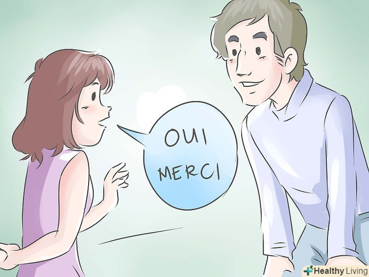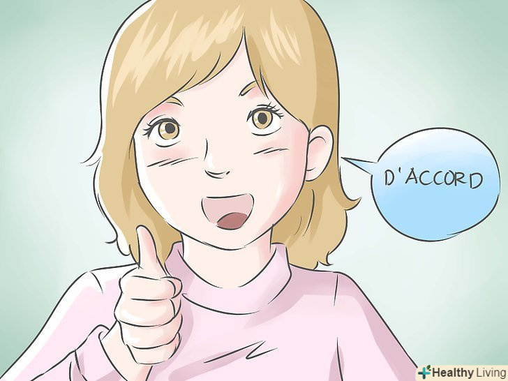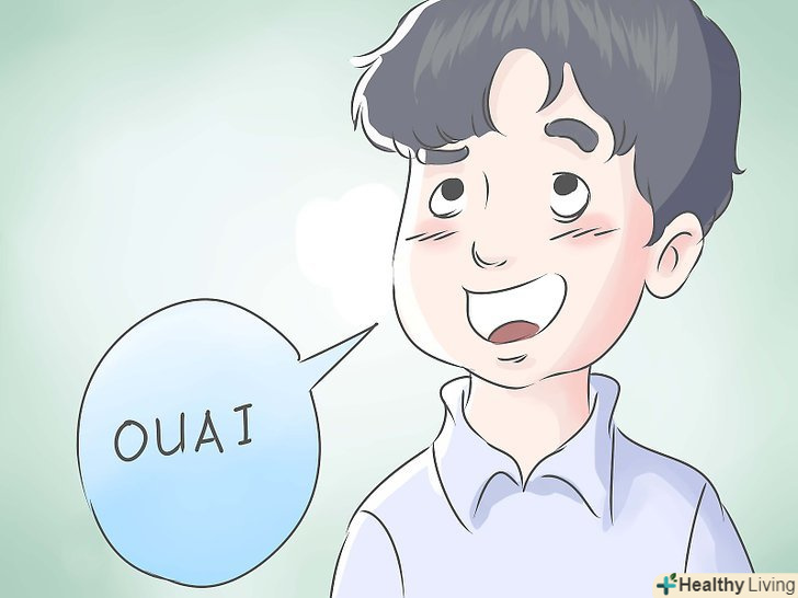 Скажіть " oui. " [1] це перекладається, як звичайне "так".- Це слово можна використовувати майже в будь-якій ситуації, незважаючи на те, офіційний це розмова чи ні.