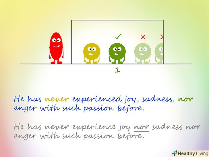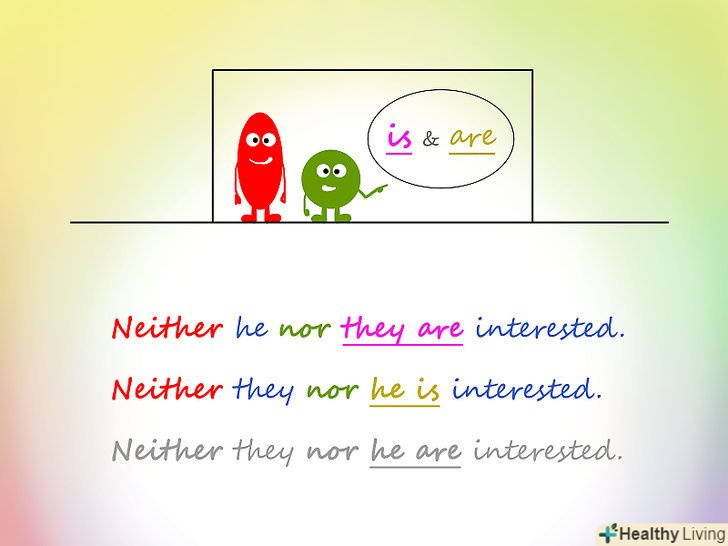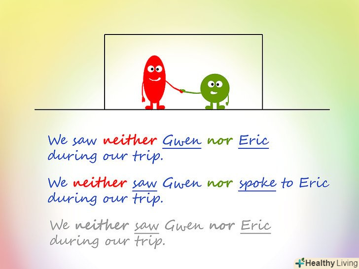 Перевірте, чи правильно використані в реченні іменники і дієслова.[4] іменнику однини повинен відповідати аналогічний дієслово. Іменнику множини повинен відповідати аналогічний дієслово.- Це, як правило, проблеми не представляє, якщо з одного боку neither / nor не варто, скажімо, іменник однини, а з іншого - множини.