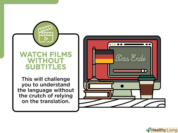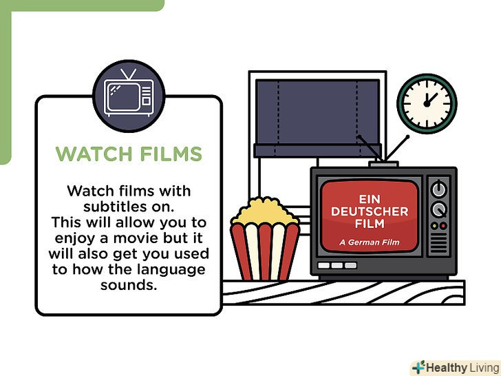 Дивіться фільми.дивіться фільми з субтитрами. Такий спосіб перегляду не тільки допоможе вам повністю насолодитися фільмом, але і звикнути до звучання мови. Це також хороший спосіб вивчити базову лексику. Намагайтеся простежити, як Переклад зіставляється з тим, що говорять з екрану.