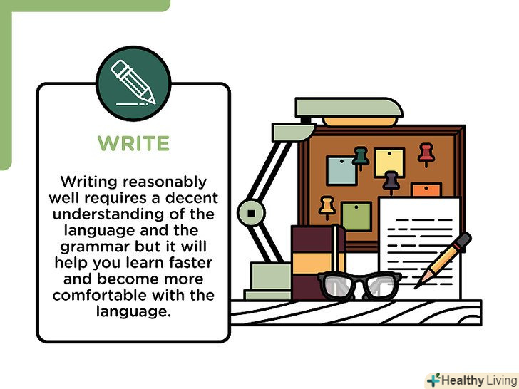 Пишіть.не важливо, що саме ви пишете, просто пишіть. Об'єктивно хороший твір вимагає глибоких знань в мові і його граматиці. Така практика допоможе вам швидше вивчити і звикнути до мови. Якщо це можливо, знайдіть німця, який буде читати все, що ви пишете, і давати цьому оцінку.- Ви можете писати листи, вести щоденник, писати рецензії на фільми і все, на що тільки вистачить фантазії.