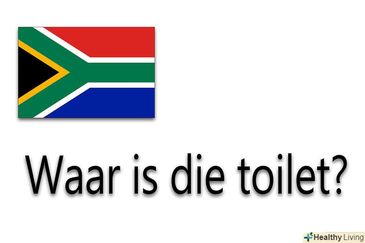 Навчіться задавати питання:- " де знаходиться туалет?"буде" Waar is die toilet?"(ваар ІС ді туелет)