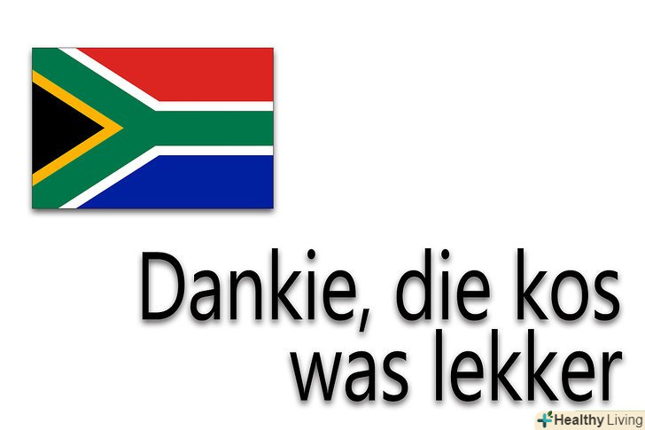 Вивчіть ввічливі форми прощання:- "спасибі, їжа була смачною "буде" Dankie, die kos was lekker " (данкі, ді кос вас Лекер).