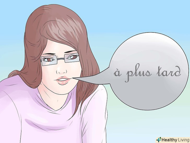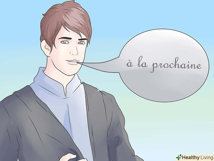 Попрощайтеся на короткий час за допомогою "à la prochaine" або "à bientôt".[6] обидва висловлювання означають щось на зразок:"до швидкого".- Більш дослівно "à la prochaine "означає" До наступного", що, по суті, означає"До наступного разу, коли ми зустрінемося".