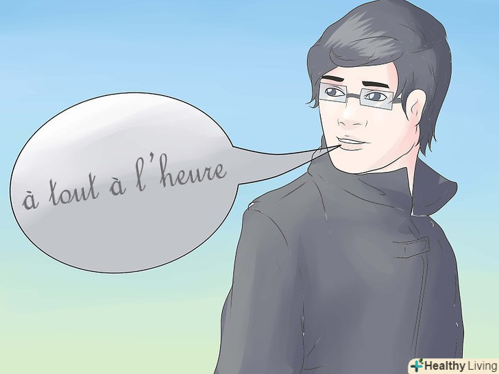 Використовуйте " à tout à l'heure "або" à tout de suite", коли побачите співрозмовника найближчим часом.обидві фрази означають щось на кшталт:"Побачимося через короткий час".- Використовуйте "à tout à l'heure", щоб сказати" до швидкої зустрічі "або"до швидкого". Вимовляєте це як "а ту та лер".