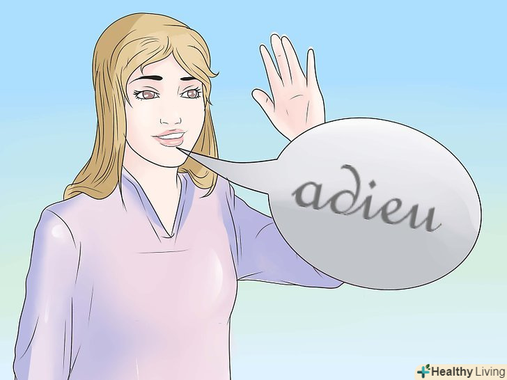 Використовуйте "adieu". [3] хоча "adieu" використовується не так часто, як це було раніше, воно все ще може застосовуватися в більшості ситуацій як спосіб прощання.- " A "перекладається як" к", А" Dieu "означає"Бог". У більш буквальному перекладі ця фраза звучить " до Бога "і це те ж саме, коли говорять" йди з Богом "або"щасливої дороги".