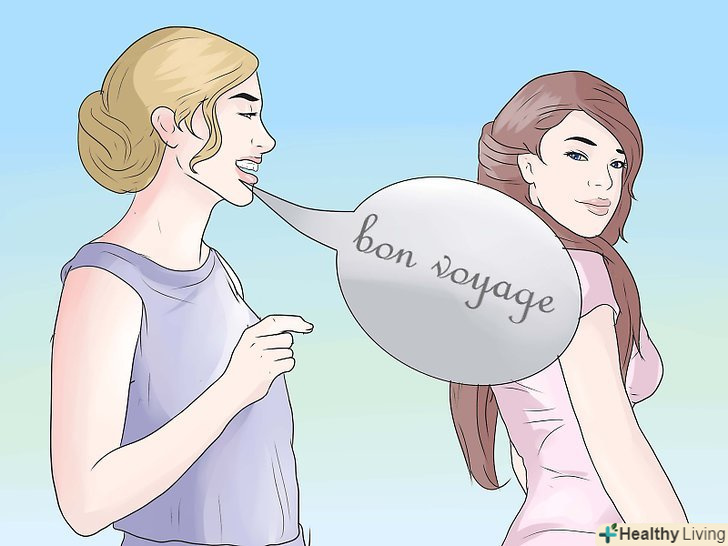 Побажайте кому-небудь щасливого шляху за допомогою" Bonne voyage","Bonne route "або"Bonnes Vacances".[4] кожну з цих фраз можна перекласти щось на кшталт "щасливого шляху", і кожна з них може бути використана, щоб попрощатися з кимось, хто їде в подорож або у відпустку.- "Voyage" означаєподорож, поїздка, "bon voyage" перекладається найбільш точно "щасливої дороги". Вимовляєте це як "бон вуаяж".
