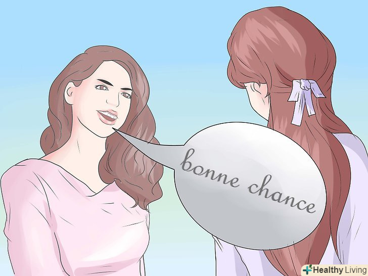 Побажайте кому-небудь удачі за допомогою "Bonne chance"або" bon courage".обидва висловлювання можна сказати комусь, хто йде, і обидва означають "удачі" в тій чи іншій формі.- "Bonne chance" використовується, коли удача супроводжує адресату. "Chance" означає "везіння", "шанс"або " удача". Вимовляєте "Bonne chance "як"бон шанс".