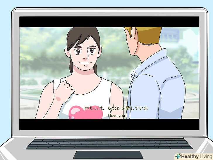Дивіться фільми японською мовою.для того, щоб вивчити японську мову, необхідно максимально в нього зануритися. Проводьте вільний час за переглядом фільмів або телевізійних шоу японською мовою. Так ви дізнаєтеся безліч термінів (включаючи сленгові вирази) і отримаєте ще один спосіб відточити свої навички в розумінні мови.[12]