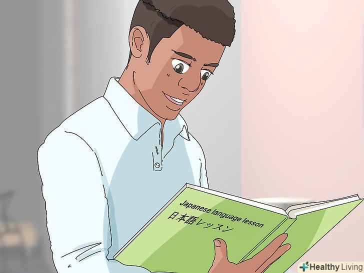 Читайте.спробуйте знайти книги або газету японською мовою. Це відкриє вам цілий ряд нових слів і виразів, а читання — це дуже активний спосіб навчання. У міру читання японською мовою Ви глибоко в нього поринете.[13]