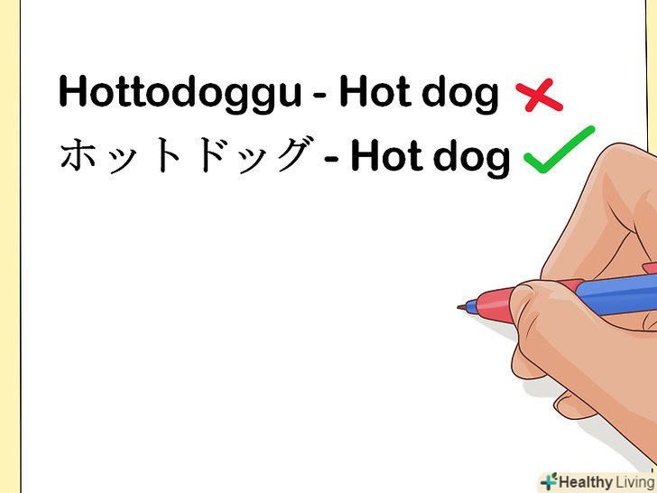 Вивчіть основи катакани. Катакана-це серія символів, що використовуються для позначення запозичених слів або слів неяпонського походження (наприклад, хот-дог або інтернет). Вивчіть терміни катакани для російських слів, які ви, швидше за все, будете використовувати.[2]
