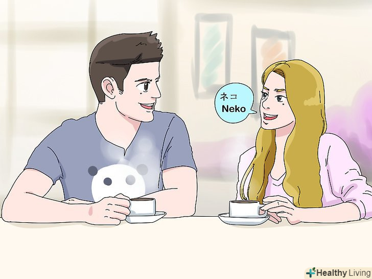 Практикуйтеся з ким-небудь особисто.найкращий спосіб зміцнити знання і освоїти граматику-це практикуватися з іншою людиною. Якщо у вас є друг, який є носієм японської мови, призначте зустріч і поспілкуйтеся з ним![9]- Якщо ви не знаєте жодного носія мови, можна пошукати міжнародні зустрічі або групи мовного обміну в своєму регіоні.