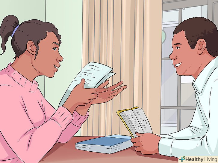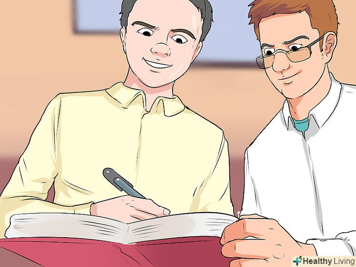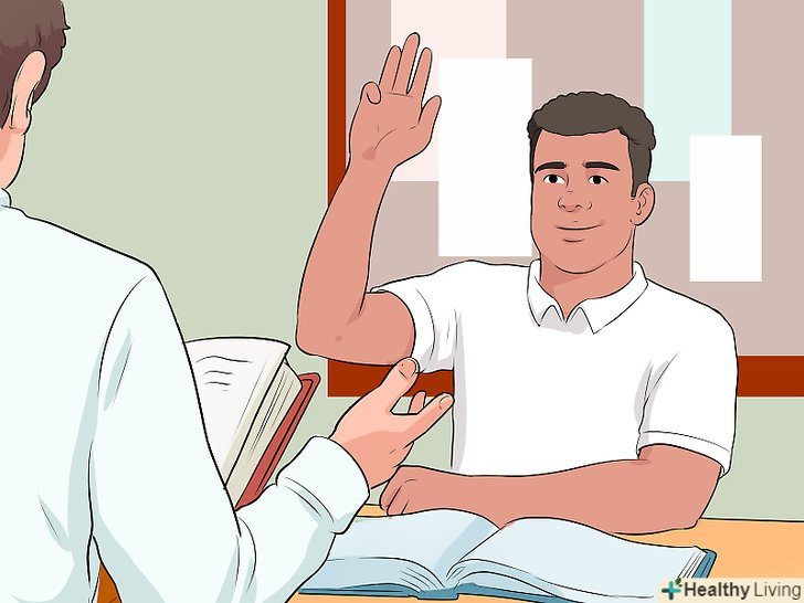Задавайте питання.вчителям подобається відповідати на питання по поточній темі — якщо учень щось запитує, значить він уважний на уроці. Якщо ви будете задавати питання, то краще зрозумієте, що відбувається на занятті. Якщо ви не знаєте відповіді на питання, запитайте самі! Так ви продемонструєте захопленість матеріалом.[9]- Якщо ви соромитеся проявляти активність на занятті, обговоріть з учителем після уроку, що вам здалося цікавим або незрозумілим. Так ви розкладіть все по поличках в голові і зможете отримати пояснення в приватному порядку.