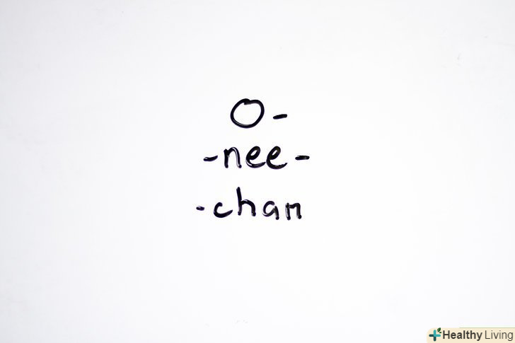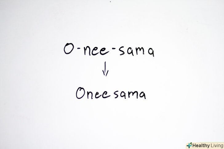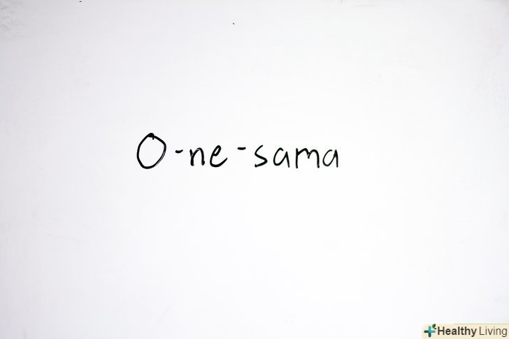 Розбийте слово на частини.тут є деякі елементи, призначення яких варто знати. У японській мові Іменні суфікси (суфікси, що позначають статус і повагу до людини) дуже важливі. Буде краще, якщо ви навчитеся в них розбиратися.- "O -" - цей префікс вказує на шанобливе ставлення до людини або предмету. В інших словах, що позначають сестру, цей префікс можна і опустити, але якщо ви вчините так само зі словом "oneesama" через те, що...