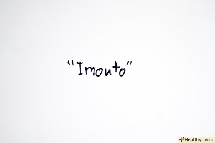 "Imouto" використовується при зверненні до молодшої сестри.зазвичай брати і сестри звертаються до молодших по імені, тому в цьому слові немає особливої необхідності.- Не додавайте Іменні суфікси "-chan" або "-kun" в кінці. Так кажуть тільки якщо хочуть нагрубити або принизити свою молодшу сестру.