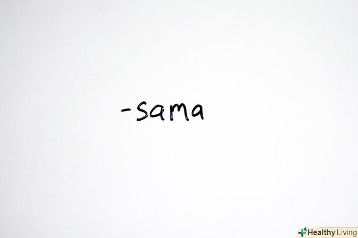 - "- sama " - це вже найбільш поважний іменний суфікс в сучасній японській мові. Цей суфікс робить акцент на тому, що говорить має більш низький статус по відношенню до того, про кого йде мова. Приблизний аналог в російській мові-слова" пан (-жа)"," Високоповажний (-а) " (можна використовувати щодо жінок і чоловіків).