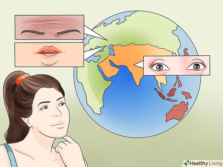 Не забувайте про культурні відмінності.хоча вважається, що вирази обличчя є "універсальною мовою емоцій", в різних культурах вирази щастя, смутку і злості можуть інтерпретуватися по-іншому.- Згідно з дослідженнями, при інтерпретуванні виразів обличчя азіатські культури більше акцентують свою увагу на очах, в той час як західні культури – на бровах і роті. Іноді це може призвести до пропущених підказок або неправильно витлумачених сигналів під час міжкультурного спілкування. Більш того, було запропоновано, що азіатські культури насправді асоціюють різні фундаментальні емоції, на зразок гордості і сорому, з конкретними виразами, а не з сімома основними емоціями, як це роблять Західні культури.[16]